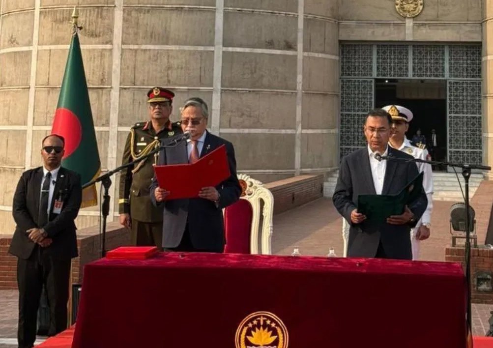 बांग्लादेश में मंगलवार को नेशनलिस्ट पार्टी (BNP) के अध्यक्ष तारिक रहमान ने प्रधानमंत्री पद की शपथ ली। उन्हें राष्ट्रपति मोहम्मद शहाबुद्दीन ने शपथ दिलाई। शपथ ग्रहण समारोह राष्ट्रीय संसद भवन के साउथ प्लाजा में हुआ।17 साल का वनवास काटकर लौटे तारिक रहमान ने देश के नए प्रधानमंत्री के रूप में शपथ ले ली है।