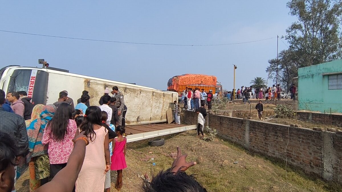 ट्रक की टक्कर से बस पलटी, 12 से अधिक यात्री घायल