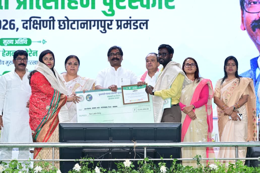 रांची : मुख्यमंत्री हेमन्त सोरेन ने आज खेलगांव स्थित हरिवंश टाना भगत इंडोर स्टेडियम में आयोजित “मुख्यमंत्री पंचायत प्रोत्साहन पुरस्कार समारोह-सह-मुखिया सम्मेलन 2026” में भाग लिया। इस दौरान उन्होंने राज्य की पंचायतों को सशक्त बनाने के लिए करोड़ों रुपये की प्रोत्साहन राशि बांटी और जनप्रतिनिधियों को ग्रामीण विकास का असली सारथी बताया।