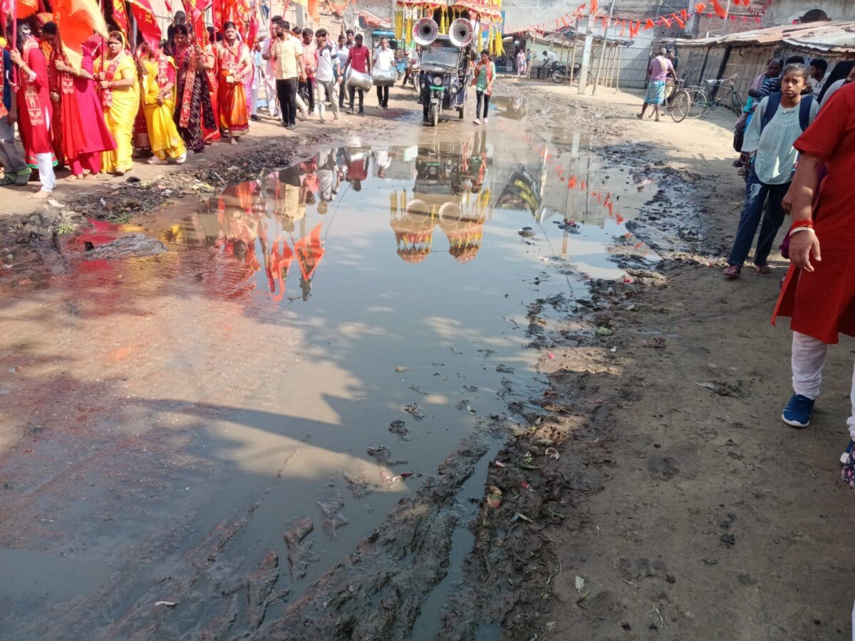 सुपौल। जिले के त्रिवेणीगंज नगर परिषद क्षेत्र के मेला ग्राउंड सड़क में हल्की बारिश से पानी लगने के कारण आम लोगों को भारी कठिनाइयों का सामना करना पड़ रहा है।