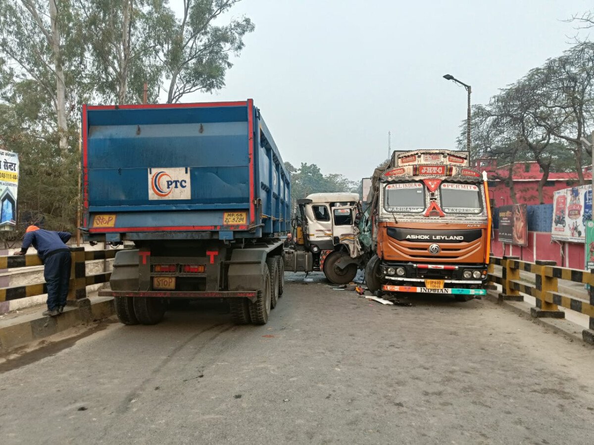 ट्रक यूपी के आगरा से रांची की ओर माल लेकर जा रहा था। कचहरी चौक की ओर से रेडमा ओवरब्रिज पर चढ़ते समय रेडमा चौक की तरफ से आ रहे तेज रफ्तार हाइवा अचानक मुड़ गया और सीधे उसके ट्रक में टक्कर मार दी। टक्कर इतनी जोरदार थी कि दोनों वाहन पुल पर ही फंस गए। हादसे के बाद हाइवा चालक मौके से फरार हो गया। अगर वाहन टक्कर के बाद रेलिंग तोड़कर नीचे गिर जाते तो रेलवे ट्रेक भी बाधित हो जाता। नीचे से रेलवे लाइन गुजरी है।