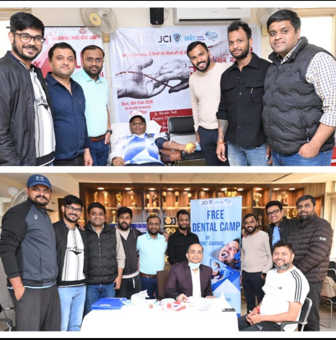 रांची । जेसीआई रांची ने 8 फरवरी 2026 को सेवा की मिसाल पेश करते हुए एक नि:शुल्क दंत चिकित्सा शिविर और एक विशाल रक्तदान शिविर का सफल आयोजन किया। जेसीआई कार्यालय में आयोजित इन कार्यक्रमों का उद्देश्य स्वास्थ्य जागरूकता फैलाना और जीवन बचाने की दिशा में योगदान देना था।रक्तदान शिविर: ह्यबन कर रक्त दाता, दें किसी को जीवन की नई आशाह्ण इसमें कुल 42 सदस्यों ने पंजीकरण करवाया। कार्यक्रम को सफल बनाने मैं नागरमल मोदी सेवा सदन ब्लड बैंक रांची का योगदान मिला ।