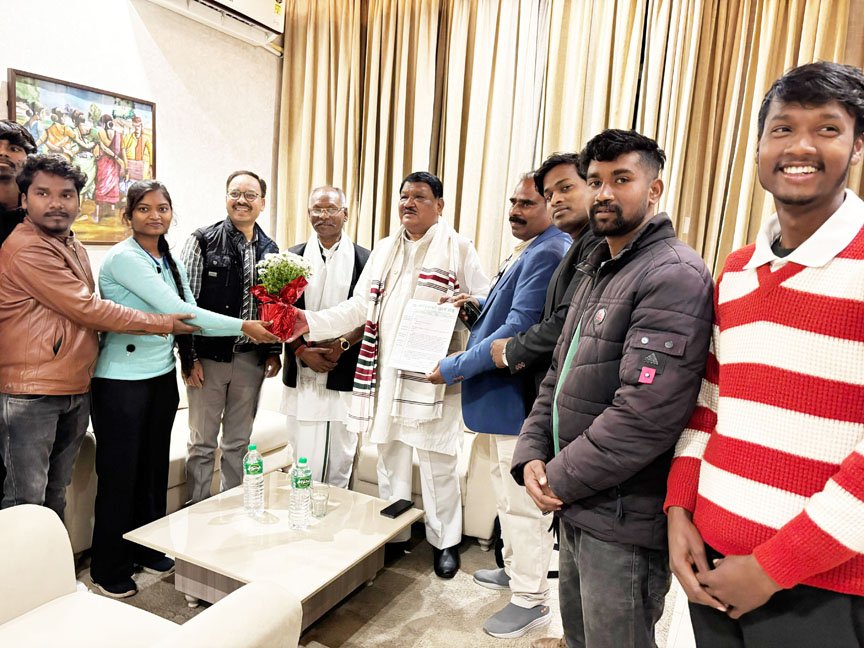 झारखंड आदिवासी छात्र संघ के प्रतिनिधिमंडल ने रविवार को केंद्रीय अध्यक्ष सुशील उरांव के नेतृत्व में केंद्रीय आदिवासी मामलों के मंत्री जुएल ओराम से रांची में मुलाकात की और आदिवासी छात्रों की छात्रवृत्ति, शिक्षा, रोजगार और अधिकारों से जुड़े मुद्दों पर विस्तृत ज्ञापन सौंपा। झारखंड आदिवासी छात्र संघ के केंद्रीय अध्यक्ष सुशील उरांव ने कहा कि झारखंड देश के कुल खनिज भंडार का लगभग 40 प्रतिशत देता है, लेकिन राज्य की 26.3 प्रतिशत आदिवासी आबादी शिक्षा और रोजगार जैसी मूलभूत सुविधाओं से वंचित है। उन्होंने आरक्षित पदों की रिक्तता और प्रमोशन में आरक्षण न मिलने की समस्या भी उठाई।