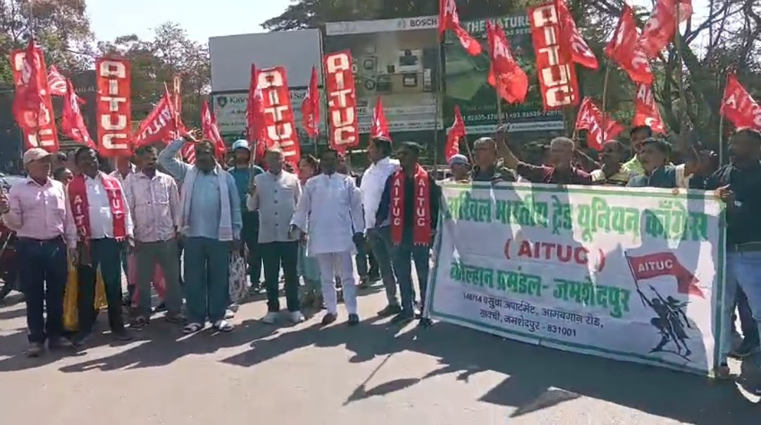 पूर्वी सिंहभूम। केंद्र सरकार की नीतियों के विरोध में 12 फरवरी 2026 को आयोजित राष्ट्रव्यापी आम हड़ताल का असर जमशेदपुर में व्यापक रूप से देखने को मिला। अखिल भारतीय ट्रेड यूनियन कांग्रेस (एआईटीयूसी) के नेतृत्व में साकची स्थित आलमबाग मैदान से एक विशाल जुलूस निकाला गया, जो शहर के प्रमुख मार्गों से होते हुए जुबली पार्क स्थित उपायुक्त कार्यालय गेट तक पहुंचा। जुलूस और धरना कार्यक्रम में बिहार झारखंड सेल्स प्रतिनिधि यूनियन, भारतीय चिकित्सा एवं विक्रय प्रतिनिधि महासंघ, अखिल भारतीय लोकतांत्रिक छात्र संगठन तथा संयुक्त किसान मोर्चा समर्थित विभिन्न संगठनों के प्रतिनिधियों ने भाग लिया।