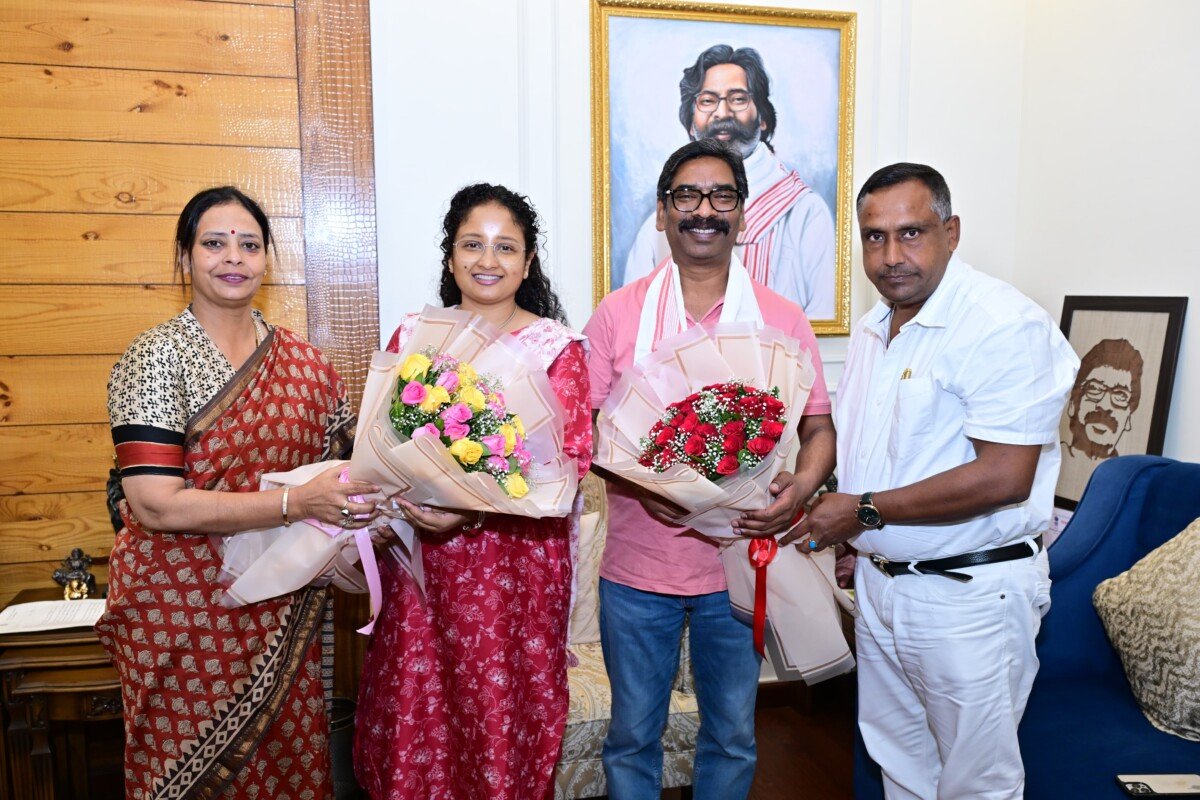 रांची। जमशदपुर के मानगो नगर निगम चुनाव में ऐतिहासिक विजय प्राप्त करने के बाद मेयर सुधा गुप्ता ने पूर्व मंत्री बन्ना गुप्ता के साथ सोमवार को झारखंड के मुख्यमंत्री हेमंत सोरेन और विधायक कल्पना सोरेन से रांची स्थित मुख्यमंत्री आवास में शिष्टाचार भेंट की। इस अवसर पर सुधा गुप्ता ने मुख्यमंत्री और कल्पना सोरेन को पुष्पगुच्छ भेंट कर मानगो की जनता की ओर से आभार व्यक्त किया। प्रचंड जीत के बाद विधायक कल्पना सोरेन ने सुधा गुप्ता और बन्ना गुप्ता का मुंह मीठा कराकर शुभकामनाएं दीं।