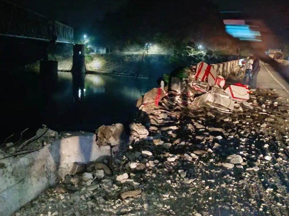 पुल की रेलिंग तोड़ ट्रक गिरा डैम में, चालक लापता